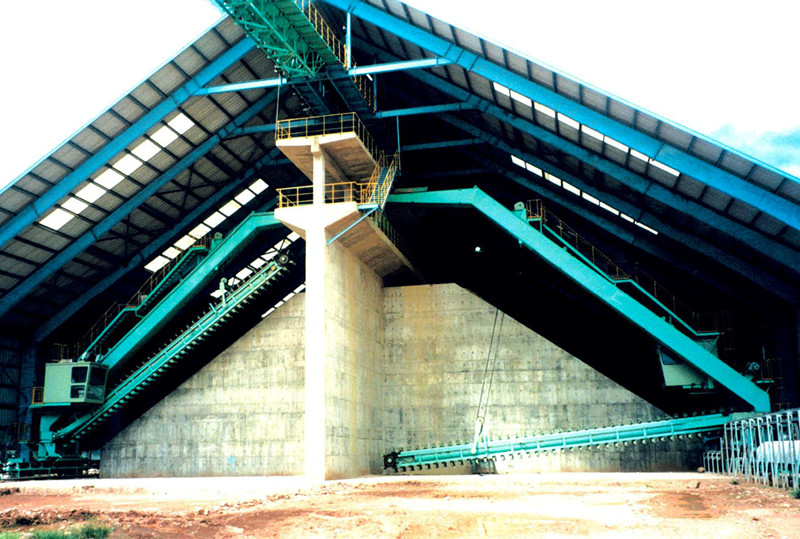 A variety of materials can be arranged in one stock yard, which can span the stock pile and adopt the side reclaiming process.